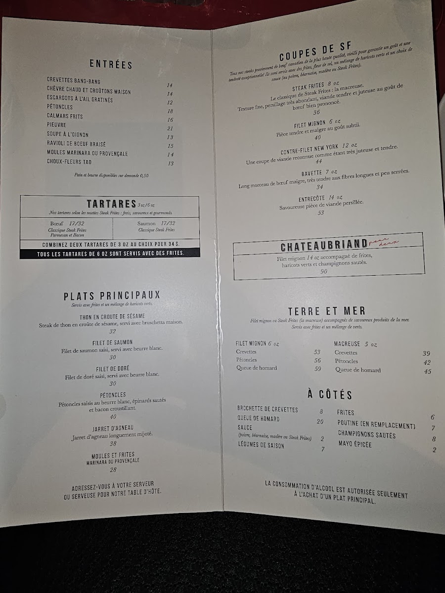 Welcome to Steak Frites St-Paul, a delightful culinary destination located at 2125 Boul. le Carrefour, Laval, QC. Known for its vibrant atmosphere, this establishment offers a cozy blend of casual dining and bar culture. The menu showcases a range of steaks, seafood, and chicken dishes, with a standout highlight being their homemade fries, a customer favorite.